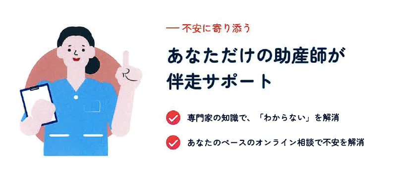 妊娠中から産後3ヵ月まで、専属の助産師にオンラインで相談できるサポート事業です。妊娠・産後の体調管理や育児について、ウェアラブルデバイス(無料貸与)を活用して心身の健康管理を行い、そのデータを基に専門家のアドバイスが受けられます。また、パートナー向けの育児準備支援もあり、パートナーと一緒に育児を学びたい方におすすめです。